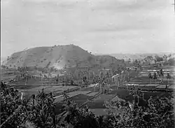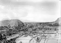 Bugbug is an area of Karangasem Regency, Bali. Indonesia. It is located east of Candidasa and its inhabitants celebrate the Perang Dawa (war of the gods) every other year at full moon of the fourth month (October). People from nearby villages then climb to the top of a hill and sacrifice pigs by hanging them in trees. A beach is hidden among two cliffs / hills, Bugbug Cliff and Prasi Cliff.[1]