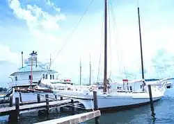 Construction of bugeyes closely paralleled the oyster harvest, which peaked in 1884. As the catch declined, the skipjack became more popular, as it was smaller and cheaper to build. Bugeye construction dropped to almost nothing shortly after the turn of the century. Many of the survivors gave up dredging and devoted themselves to the buy boat business, in which case the sails were no longer wanted. In a typical conversion the bowsprit and main mast were removed entirely, and the fore mast shortened and modified into a derrick for hoisting. A stern cabin for the wheel and an engine for power completed the transformation. (The William B. Tennison is a surviving example of such a conversion.)[3] As a result of such conversions, and simple attrition, surviving bugeyes are extremely rare, and only one (the Edna E. Lockwood) survives in its original form.[4] The plan was however taken up as a pleasure craft, and new versions for that purpose continue to be built.