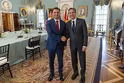 Bujar Osmani (Macedonian: Бујар Османи, born 11 September 1979[1]) is a Macedonian politician of Albanian descent who served as the Minister of Foreign Affairs of North Macedonia from 2020 until 2024 and Minister of Health from 2008 until 2011. In June 2017, he was appointed Deputy Prime Minister in charge of European affairs.[2] On 30 August 2020, Osmani became Minister of Foreign Affairs.[3] Osmani was the first Macedonian of Albanian descent to lead the top diplomatic post in North Macedonia.[4]