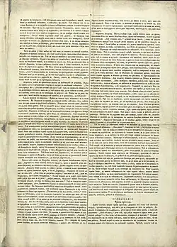 The newspaper was published by Ivan Bogorov.[2] It was published in Leipzig on 3 copies on the following dates: 20 April and 20 September 1846 and 1 January 1847. Ivan Bogorov conceives the newspaper as a fortnightly, but only 3 copies with different titles and a circulation of 500 are published. The newspaper was also distributed in Romania. Under the editorship of Ivan Bogorov, 88 issues were published, while on 25 February 1850, he was forced to lay the newspaper and printing press for 1000 francs and go to Bucharest.[3] The newspaper is 4 pages in small format. Vasil Aprilov writes about him in Fotinov's magazine: “We saw the first issue of his acquaintance these days… we were glad that you have another Bulgarian diary and we wish him good luck from his pure heart.[4]