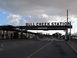 Bull Creek railway station is a railway station on the Transperth network. It is located on the Mandurah line, 11.7 kilometres from Perth station inside the median strip of the Kwinana Freeway serving the suburb of Bull Creek.
