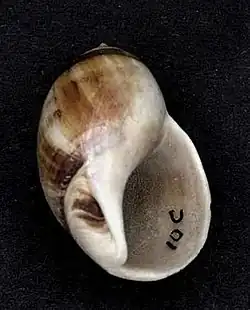 | Apertural view of a shell of Bullia laevissima (museum specimen at Naturalis Biodiversity Center) | |