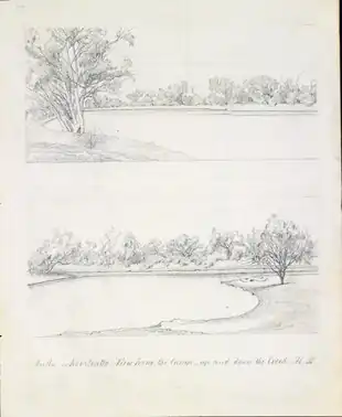 ![]() Sketch of Bulloo River area near the Kooliatto Waterhole, 1861 by Hermman Beckler, member of the Burke and Wills expedition | |||||||||||||||