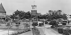 The district surveyor, John Thompson Charlton designed the city layout in 1868, which planned for uniform square blocks with wide main streets, and named it ‘Bundaberg’.[7] An early influence on the development of Bundaberg came with the 1868 Land Act, which was a famous Queensland via media, that aimed to create a class of Australian yeoman.[8] Large sugarcane plantations were established throughout the 1880s, with industries of sugar mills, refineries, and rum distilleries that delivered prosperity to Bundaberg.[9] These plantations used South Sea Islanders as indentured labourers, many of whom were blackbirded, a practice considered a form of slavery.[10][11] The trade was outlawed in 1904, with most South Sea Islanders deported by 1906.[12] Major floods in 1942 and 1954 damaged the river, ending Bundaberg's role as a river port and led to a new port at the mouth of the Burnett river.[13] In the post-war era, Bundaberg continued to grow with its wealth tied to its sugar industry.[14] In 2013, Bundaberg experienced record flooding from Cyclone Oswald, which was the worst disaster in the city's history.[15]