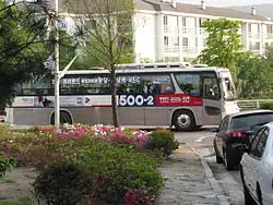 Transit (commuter) buses are called Wide Area Lines in Seoul and with red color. Some buses operated by companies in Gyeonggi Province are in different colors (as in the picture below). Those buses are filled to capacity during rush hour.