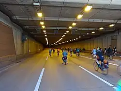 The construction section has ramps with a length of 2621 m, of which 1713 m account for the tunnels themselves. The tunnel has two tunnel tubes, each 14.50 m wide. Each tunnel tube includes a 12.50 m wide carriageway with three lanes (each 3.50 m), a hard shoulder (1.50 m) and two per meter wide elevated shoulder. The light building height is 4.90 m. For the traffic engineering equipment of the tunnel are reserved 40 cm under the blanket, so that a clear passage height of 4.50 m results. This height is monitored by means of an electronic height control at the entrances. Other tunnels include a constantly-available median strip transfer system so that one of the two tubes can be closed off and traffic flows through a tube in both directions. Within the tunnel, the semi-junction Britzer Damm leads eastwards into the district. Above it is the Carl Weder Park.