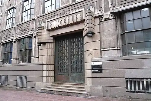 The Bungehuis was built as an office building for the N.V. Bunge's Handelmaatschappij. Its design was functionalis. Three of its sides are freestanding; its boundaries are the Paleisstraat, Spuistraat, and Singel.[1]