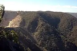 A large limestone quarry operated by Boral Limited immediately to the north of the Bungonia Gorge has also raised concerns regarding the preservation of significant geology in the area. The quarrying run-off poses a risk to water sources in the area whilst land clearing and subsequent erosion has threatened certain parts of the gorge structure and the eucalypt forest which covers the hills surrounding the valley. Site remediation was due to follow the closure of the quarry in 2011, however in 2015 Boral Limited requested a 30-year extension on their lease. Their current activities involve filling in the southern end of the pit and re-vegetating their emplacements with native species whilst they continue to quarry the northern section.[10]
