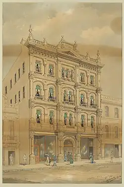 William Pitt, architect (c.1881) Melbourne Coffee Palace, 89 Bourke Street, Melbourne, architectural drawing