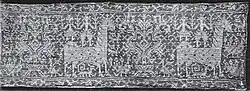 Buratto is an Italian needle lace made by darning on a net. It is quite similar in appearance to filet lace but with one important distinction—it is darned onto a woven net, rather than the knotted net used for filet. Buratto tends to also be heavier in appearance due to the woven nature of the netting used[1]