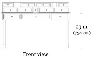 In some cases, the bureau à gradin has a second tier of drawers under the work surface, making it look like an advanced form of the bureau Mazarin or a non-enclosed version of the cylinder or tambour desk.