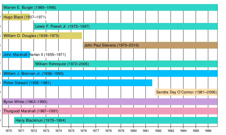 - ^ "The Burger Court, 1969-1986". The Supreme Court Historical Society. Archived from the original on 12 March 2016. Retrieved 28 February 2016.