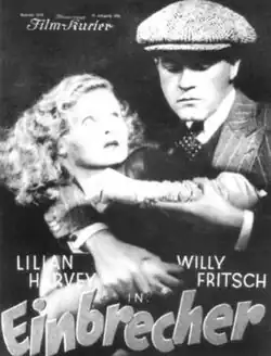 Burglars (German: Einbrecher) is a 1930 German musical comedy film directed by Hanns Schwarz and starring Ralph Arthur Roberts, Lilian Harvey, Willy Fritsch, and Heinz Rühmann.[1] It is also known in English by the alternative title Murder For Sale. It is based on the French play "Guignol le cambrioleur" by Louis Verneuil, who co-wrote the screenplay. A French-language version, titled Flagrant délit (Caught in the Act), was filmed at the same time.[2] The film was intended by the studio UFA as a follow-up to the hit musical The Three from the Filling Station.