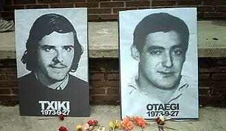 Some, however, took a "more traditional nationalist stance", including declaring that ETA was a "movement of national liberation".[16] They also recounted incidents of torture experienced at the hands of the Spanish military police.[17] According to historian Luis Castells, the trials thus became "a milestone in the anti-Franco struggle", generating "an unreleased mobilization in the Basque Country, in Spain and internationally".[18]