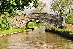 The Llangollen branch of the Shropshire Union Canal, just south of Hurleston Junction, runs north–south through the civil parish, immediately to the east of Burland village.[9] The canal is crossed by Wrexham Bridge (carrying the A534) and the grade-II-listed Swanley Bridge, which dates from around 1793,[10] as well as three footbridges: Bethills Bridge, Stoneley Green Bridge and Platt's Bridge. North of Swanley Bridge lies Swanley Lock No. 2; the grade-II-listed lock dates from 1805 and is in blue-and-red brick with stone copings.[11]