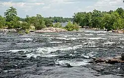 Recreational boating, particularly canoeing, has long been popular around Burleigh Falls. In 1974 the local Kawartha Non-Status Indian and Metis Association (a non-profit corporation owned by Kawartha Nishnawbe) started the Burleigh Falls Canoe Company, and began manufacturing cedar-strip canoes in response for the demand for these boats.[15] The area has been popular with fishermen since the days of the pioneers.[16][17][18] More recently, kayaking enthusiasts have arrived to enjoy the rapids.[19]