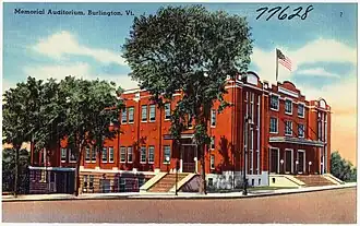 - ^ a b c d Emma Rose Haggerty, "Memorial Auditorium," 1920 Burlington Landmarks [1]. Accessed 29 July 2023.