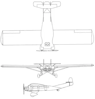The 20-passenger passenger cabin was 17 ft (5.2 m) x 12 ft 2 in (3.7 m) and was 5 ft 6 in (1.7 m) high. This allowed bulky loads to be transported as well as passengers. The passenger cabin was very comfortably furnished for this time. There were folding seats, a washroom and bunks for night flights. As with most other Burnelli aircraft, the engines were accessible in flight. The machine also had very good single-engine flight characteristics, so the flight altitude could be maintained even with a full payload. Similar to the Remington-Burnelli RB-2, which carried an automobile in the fuselage for advertising purposes, the UB-20 did so in 1934 by moving a Ford automobile under the fuselage between the legs on behalf of the Sun Oil Company.[1][2]