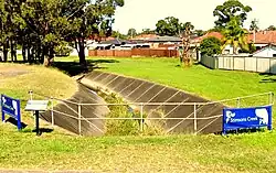Burns Creek is a small urban watercourse in south-western Sydney that is a tributary of Prospect Creek. It is located predominantly in the suburb of Fairfield East in the City of Fairfield, New South Wales, Australia. Short in length, the creek flows from west to east, where it starts as a confluence from the Prospect Creek just below The Horsley Drive (near Patrician Brothers' College, Fairfield) and flows to the eastern portion of Tangerine Street, before becoming a drain in Villawood to the southeast.[1]
