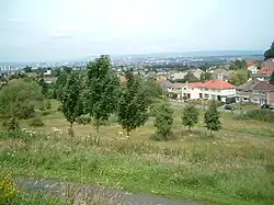 Cathkin Braes Golf Club (founded 1888)[67] and Kirkhill Golf Club (founded 1910)[68] are situated in the green belt a short distance to the south of Burnside. The area's other golf club, Blairbeth, closed in 2015[69] and was converted to a park, named Fernbrae Meadows.[70] Blairbeth was the Burnside club by geography, having been founded in 1910 with the first course on the slopes to the south of the railway station, before relocating further south due housebuilding around Crawford Road (reflected in the street name of Golf Road in this area); the second course had its small clubhouse at today's Larchfield Drive and the course over the land of Bowhouse Farm which became the northern part of Fernhill housing scheme in the 1950s, as well as the open ground eventually used for the Cathkin Relief Road in the 2010s.[71][72] Fernhill's construction caused the golf club to move south again, taking over the isolated former Mill Farm on the county boundary with Castlemilk as a clubhouse in 1956, where it remained until closure 60 years later.[73][74]