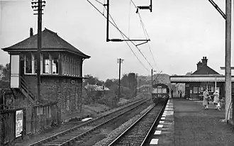 The station was opened by the Lanarkshire and Ayrshire Railway on 1 August 1904.[2] Later taken over by the Caledonian Railway, it became part of the London, Midland and Scottish Railway at the 1923 Grouping and subsequently the Scottish Region of British Railways at nationalisation in 1948. B.R electrified the line through the station in 1962, when the section beyond Neilston was closed - since that time, all services have run to/from Glasgow only, though it became possible to travel there via both sides of the Circle following track alterations in the Carthcart area carried out as part of the modernisation work.