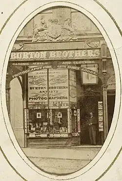 ![]() Burton Brothers shop, circa 1870, Dunedin, by Burton Brothers | |