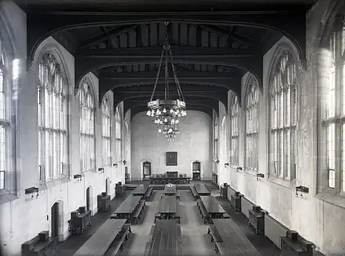 The building is divided between the large dining hall in the northwest and the student residence proper. The residence area is divided into two sections: the Upper Houses, built in 1913, and the Lower Houses, built in 1931.