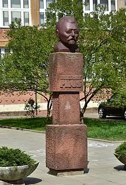 The bust of Bolesław Prus (Polish: popiersie Bolesława Prusa) is a monument in Warsaw, Poland, placed in front of the Bolesław Pruss 35th General Education Highschool at 7 and 9 Zwycięzców Street, in the neighbourhood of Saska Kępa, within the district of Praga-South. It consists of a stone bust depicting Bolesław Prus, a 19th- and 20th century novelist, and a leading figure in the history of Polish literature and philosophy, placed on a sandstone pedestal. The sculpture was made by Stanisław Sikora, and unveiled on 19 May 1983.