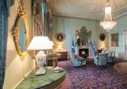 The drawing room in Bute House is commonly used by the First Minister to meet heads of foreign governments, other official guests and dignitaries, and is also used on occasions by the First Minister to hold media press conferences.[36]