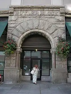 The Butler Block was converted to the Butler Hotel in 1894.[2] Later in that decade, it was the favored hostelry of those who returned wealthy from the Yukon Gold Rush. The hotel soon added its own electric plant and cold storage plant, as well as an open-front refrigerator in its grill room. Two more stories were added in 1903. The Butler became the center of the city's social life; guests included Alaskan con man, crime-boss, Soapy Smith,[10] Japanese admiral Tōgō Heihachirō, American politicians William Jennings Bryan, Robert M. La Follette, Sr., and William Howard Taft, and railroad magnate James J. Hill.[1]