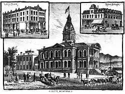 Among the migrants were many Chinese who set up businesses that created a Chinatown in Butte.[4] The Chinese migrations stopped in 1882 with the passage of the Chinese Exclusion Act. There was anti-Chinese sentiment in the 1870s and onward due to the white settlers' racism, exacerbated by economic depression, and in 1895, the chamber of commerce and labor unions started a boycott of Chinese-owned businesses. The business owners fought back by suing the unions and won. The history of the Chinese migrants in Butte is documented in the Mai Wah Museum.[11][12]