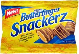- Snackerz: Butterfinger Snackerz was another bite-sized, smooth-centered version of the candy bar.