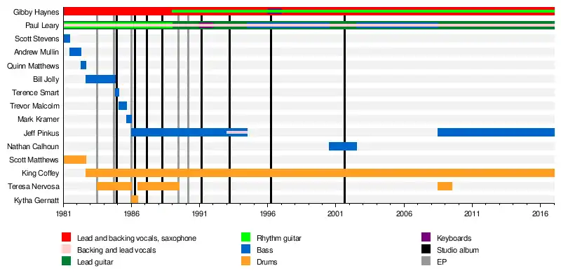 - Gibby Haynes – vocals, rhythm guitar, saxophone, bass, keyboards and effects (1981–2016)
