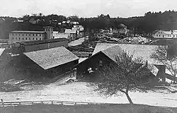 Settlers found the land generally level and suited for farming. Chief crops were corn, potatoes and hay. Buxton also provided excellent water power sites. The first sawmill was on the Little River, a tributary of the Presumpscot River. A gristmill called Bog Mill was built at the outlet of Bonny Eagle Pond. The biggest mills, however, were located at the series of falls on the Saco River. Salmon Falls had sawmills capable of turning out four million feet of lumber annually. Bar Mills had gristmills and a box mill. Moderation Falls in West Buxton had sawmills, heading mills and woolen textile mills which produced about 936,000 yards of cloth annually. Buxton's mill town prosperity left behind fine architecture. Listed on the National Register of Historic Places are Elden's Store, the Buxton Powder House, the First Congregational Church, Royal Brewster House and Salmon Falls (East) Historic District.