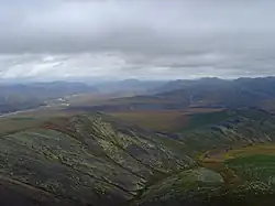 Together with the Seymchan that flows roughly southwards on the facing bank of the Kolyma basin, the Buyunda forms the Seymchan-Buyunda Depression, which limits the Upper Kolyma Highlands from the east.[2][4]