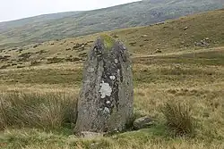 The Two Stones are large pre-historic monoliths of unknown date, which mark the summit at about 1,400 feet (430 m). The south-eastern stone measures 3m in height, the smaller north-western stone is 2m high. Also, near the mountain gate, on the south side of the track, is a stone circle and a cromlech called Maen-y-bardd (the bard's stone) nearer Rowen.