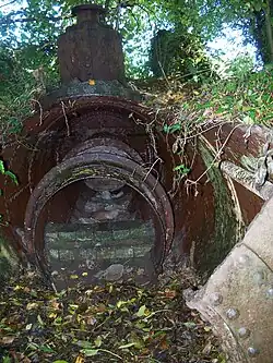 | 14 | Rag Mill | Located in Slaughterford, also known as Overshot Mill. A mill leat, now filled in, ran for over three quarters of a kilometre from the sluices just downstream of the Doncombe Brook confluence to an overshot wheel in a fulling mill on this site. In the 1890s, rag processing machinery was installed at the mill, and the undershot wheel, which can still be seen on the derelict site dates from that time, being served by a much shorter leat from the next sluice upstream from the mill. Also clearly identifiable on the site is the remains of a rag boiler. The mill, demolished in 1964, processed rags into individual fibres or "stuff", which was transported in vats of elm across the bridge to Chapps Mill for paper making. The water wheel power was supplemented by a gas engine, and ran shafts and pulleys to a cutting machine and conveyor belt, as well as a grindstone to sharpen the cutting machine blades. |