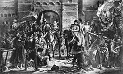 The Battle of Byczyna took place nearby between Maximilian III, Archduke of Austria, who was elected as king of Poland, and Sigismund III Vasa who also was elected as king, on January 24, 1588. Maximilian was defeated. He surrendered and went to imprisonment. The German author Gustav Freytag[6] reports in his memories about yearly border violations at Byczyna. During the Thirty Years' War the town was occupied by the Saxons in 1633 and Swedes in 1646.[3] In the 16th century, a Polish school was established, which flourished in the 17th century, and from 1657 to 1661 its rector was Byczyna-born Polish scholar and translator John Herbinius.[3]