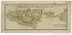 On 9 July 1766, during a meeting of the Committee of the Crown Treasury, a plan was presented by artillery captain and royal geographer Franciszek Florian Czaki. He proposed to build the canal where the Noteć was the closest to Bydgoszcz.[7] It was planned to be 10.5 kilometres (6.5 mi) long, 9 metres (30 ft) wide and 3.5 metres (11 ft) deep. The level difference (18 metres (59 ft)) between the Brda and the Noteć was compensated by six water locks. Construction would have been carried out by a private company, which would then have received the right to collect taxes in return.[6] Approval for building this project was not given by the Sejm, due to the political turmoils of the time (1768): Bar Confederation, then First Partition of Poland. In retrospect, the project was not devoid of technical defects, especially in under-estimating the requirement of water resources that could be found locally (streams and wetlands).[5]