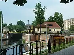 Two locks of the Old Canal have been demolished in 1970 (Śluza II Św. Trójcy and Śluza III Grunwaldzka), during the extension works of western end of Marshal Ferdinand Foch Street.[17]