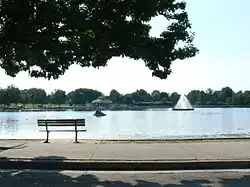Byrd Park, also known as William Byrd Park, is a public park located in Richmond, Virginia, United States, north of the James River and adjacent to Maymont. The 287-acre (1.16 km2) park includes a mile-long trail with exercise stops, monuments, an amphitheatre, and three small lakes: Shields (sometimes spelled Sheilds), Swan, and Boat Lake. Boat Lake (also called Fountain Lake) has a lighted fountain at its center. Visitors can rent pedal boats there in season. The park includes tennis courts, Little League baseball fields, and a children's playground. The historic round house[1] and Poplar Vale Cemetery are also located in the park. It is named after William Byrd II, whose family owned much of the area when Richmond was founded in 1737. The park was listed on the National Register of Historic Places in 2016.