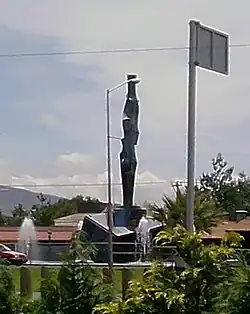 Gálvez also created murals and sculptures, both small and monumental. His first mural was sculpted done in 1968 in Los Angeles.[2] However, most of his monumental work was produced later in his career as he concentrated on painting in the 1970s and 1980s.[4][13] These include a mural at the National Conservatory of Music in Mexico City (1970), a thirty-foot high sculpture in Unidad Morelos in Mexico City (1971), a hand hammered copper triptych for a private residence in Mexico City (1984), a sculpted door for a private residence (1985), a sculpture for a private home in New York (1986), Reclined Torso at the Hotel Nikko Mexico (1998), Torso I a five-foot high sculpture for the city of Pachuca (1999), Torso II a nineteen foot high sculpture at the Altiva Building, Mexico City (1999), Millennium, a bronze sculpture/fountain at the highway entrance to Pachuca (2000), a sculpture garden for Mixquiahuala, Hidalgo (2005) and the master plan and central mosaic for the David Ben Gurion Cultural Park in Pachuca (2005) .[3][4][9] The park project, the last before his death, included not only the creation of the central mosaic, the largest pedestrian mural in the world at 345,000ft2, but also the design of the 65-acre park itself.[13]