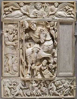 Zachary Chitwood argues that the Corpus Juris Civilis was largely inaccessible in Latin, particularly in the provinces.[181] Following the 7th-century Arab conquests, people began questioning the development and application of law, leading to stronger ties between law and Christianity.[182] This context influenced Leo III (r. 717–741) to develop the Ecloga, which placed an emphasis on humanity.[183] The Ecloga inspired practical legal texts like the Farmers' Law, Seamen's Law, and Soldiers' Law, which Chitwood suggests were used daily in the provinces as companions to the Corpus Juris Civilis.[184] During the Macedonian dynasty, efforts to reform law began with the publication of the Procheiron and the Eisagoge, which aimed to define the emperor's power under prevailing laws, and to replace the Ecloga due to its association with iconoclasm.[185] Leo VI (r. 886–912) completed a complete codification of Roman law in Greek through the Basilika, a work of 60 books which became the foundation of Byzantine law.[186] In 1345, Constantine Harmenopoulos compiled the Hexabiblos, a six-volume law book derived from various Byzantine legal sources.[187]