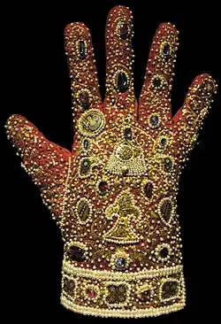 Glove from the Imperial Regalia of the Holy Roman Emperors in Vienna, including enamelled plaques. Palermo, c. 1220