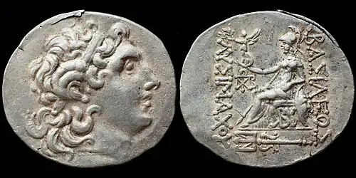 | Silver tetradrachm struck in Byzantion c. 150–100 BCE. Byzantion struck coins in the name of Lysimachus nearly 200 years after his death. | |