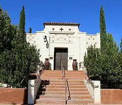 César E. Chávez National Monument,[3] also known as Nuestra Señora Reina de la Paz, is a 116-acre (47 ha) U.S. National Monument in Keene, Kern County, California, located about 32 miles away from Bakersfield, California. The property was the headquarters of the United Farm Workers (UFW), and home to César Chávez from the early 1970s until his death in 1993. Chávez's gravesite is located in the property's gardens along with that of his wife, Helen Fabela Chávez. Originally developed as a headquarters and worker housing area for a quarry, it served as a tuberculosis sanitarium (known as Stony Brook Sanitorium) in the early 1900s,[3] until its acquisition by the UFW in the early 1970s.