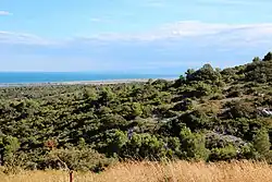 The coast stretches across 180 km and includes the Pyrénées-Orientales, Aude, Hérault, and Gard departments. It is bordered by the Côte Vermeille to the south and Camargue to the east.[1] Along it are a series of lagoons, such as the Étang de Thau, Palavas ponds, and Étang de Leucate.