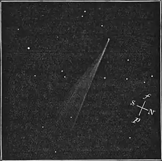 ![]() Telescopic view of Comet Brooks, drawn by Edward E. Barnard from Nashville, Tennessee on 7 May 1886.[1] | |