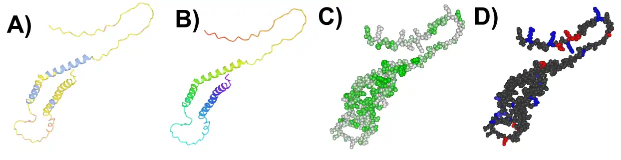 Human c20orf141 has a disordered region and transmembrane domain.[9] However, human c20orf141 has two predicted alpha helices in concentrated clusters of hydrophobic amino acids. [14][15][16]
