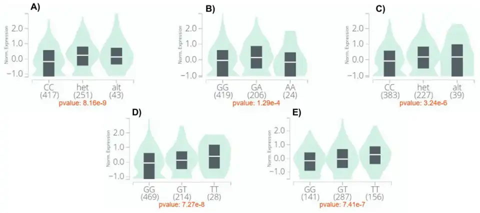 All known expression quantitative trait loci (eQTLs) of c20orf141 are found downstream of the 3' untranslated region (UTR).[27] In subcutaneous and visceral (omentum) adipose tissue, homozygous genotypes have lower expression, while alternative allele genotypes have the highest.[27] Similarly, the homozygous genotype in fibroblast cells has the lowest expression. [27]